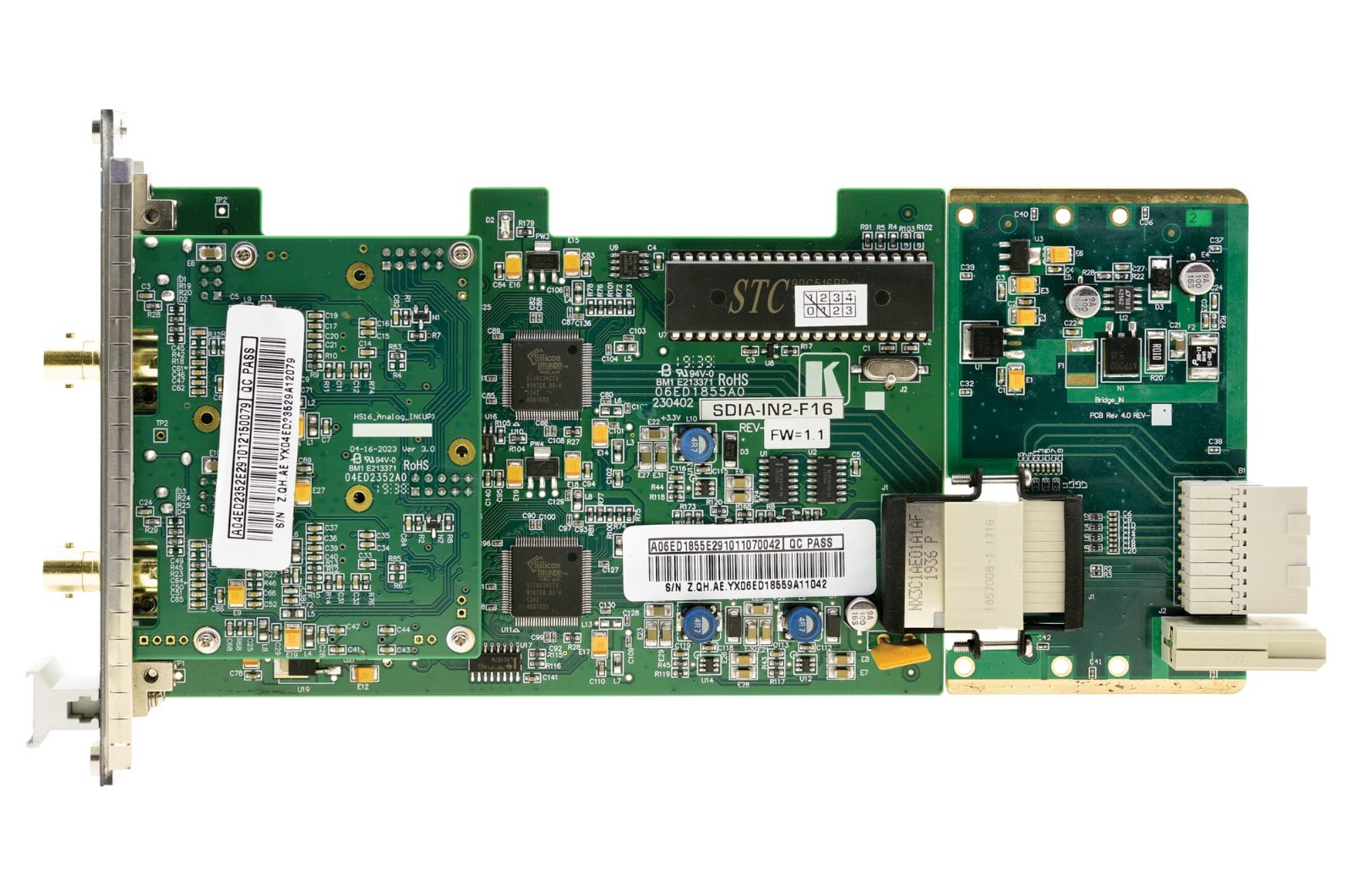 - SDIA-IN2-F34是一款雙通道SDI輸入卡,帶有可選的模擬音頻嵌入功能,適用于VS-1616或VS-34FD系列模塊化多格式數(shù)字矩陣切換器;